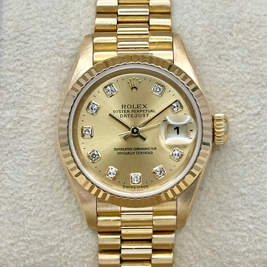 Lady-Datejust 26 Champagne Diamond 18K Yellow Gold President Ref 69178 1993