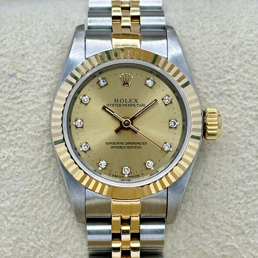 (ON HOLD) Oyster Perpetual 26 Champagne Diamond Dial 18K Yellow Gold Ref 67193 1991