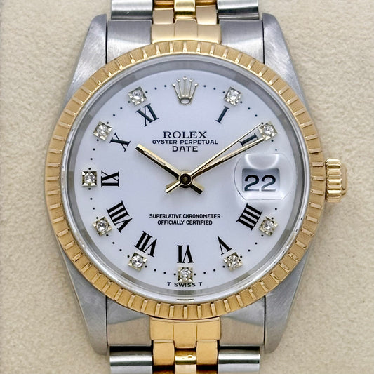 Oyster Perpetual Date 18K Yellow Gold White Buckley Diamond Ref 15233G 1991