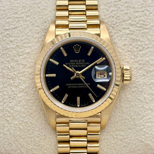 Lady-Datejust 26 Black 18K Yellow Gold Presidential Ref 6917 1979