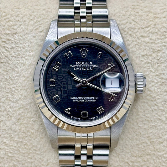 Lady-Datejust 26 Black Computer 18K White Gold Ref 69174 1991