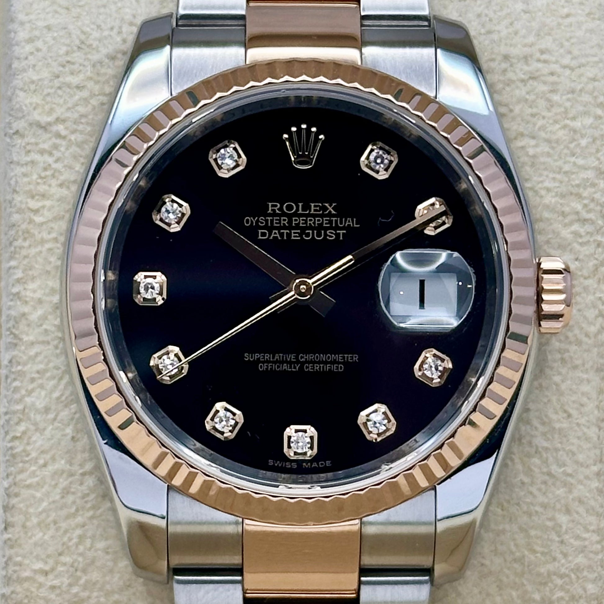 Datejust 36 Black Diamond Dial 18K Rose Gold Ref 116231