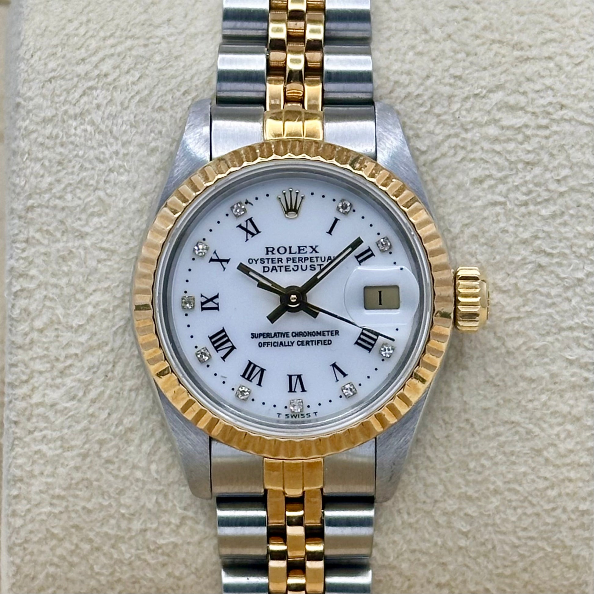 Lady-Datejust 26 White Buckley Diamond Dial 18K Yellow Gold Two Tone Ref 69173G 1988