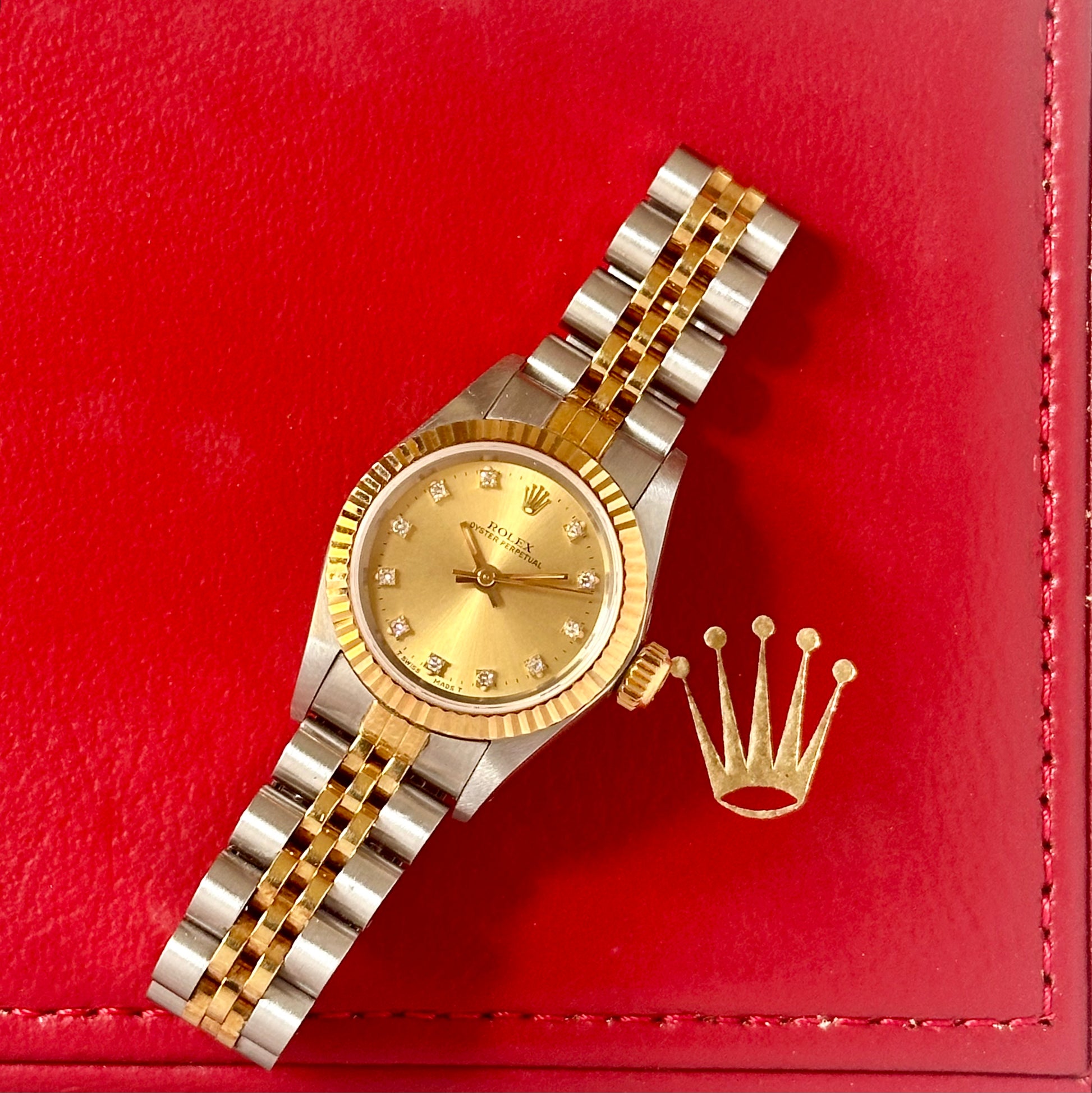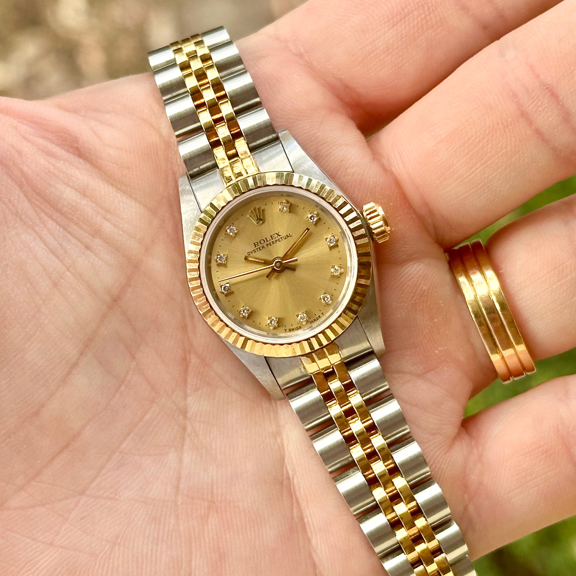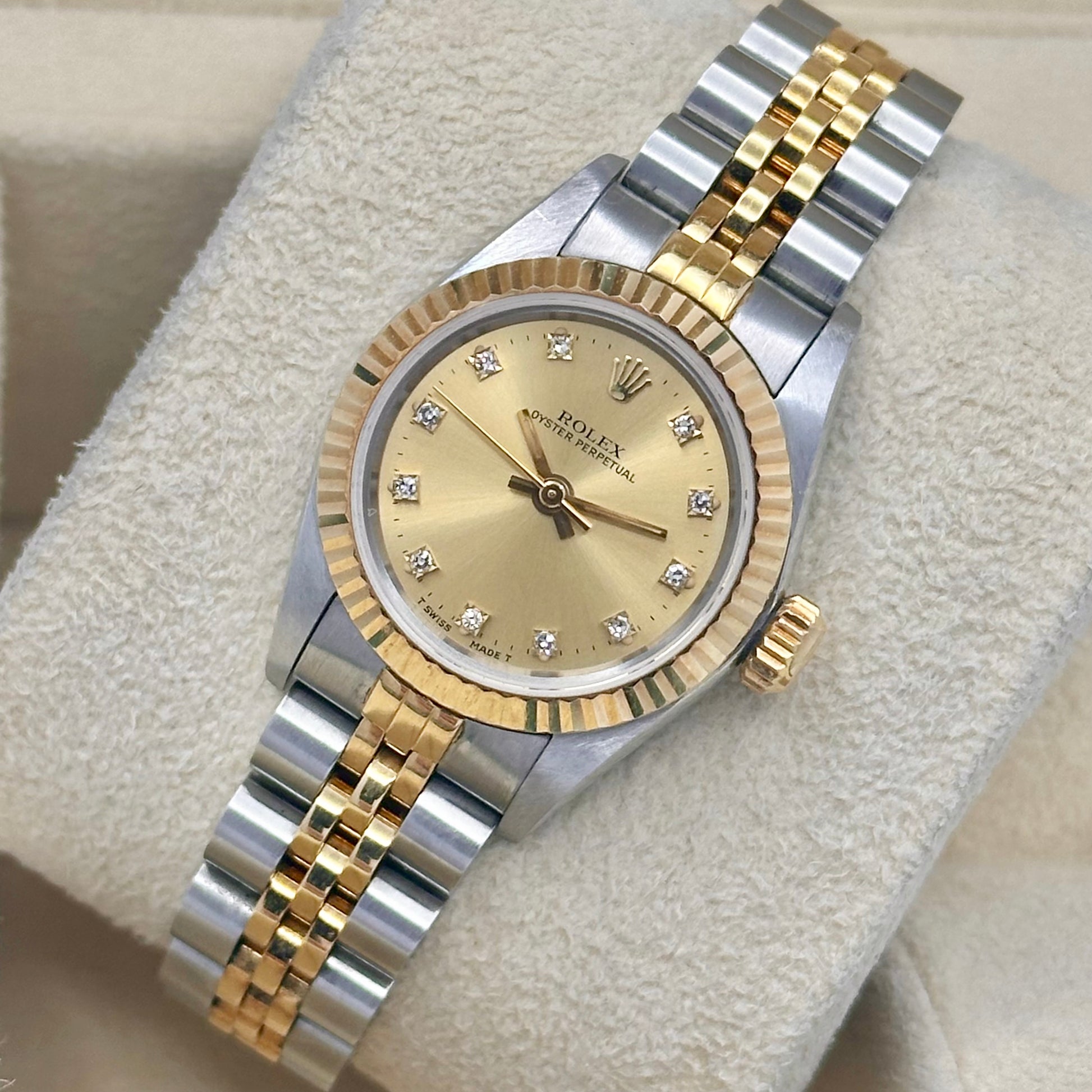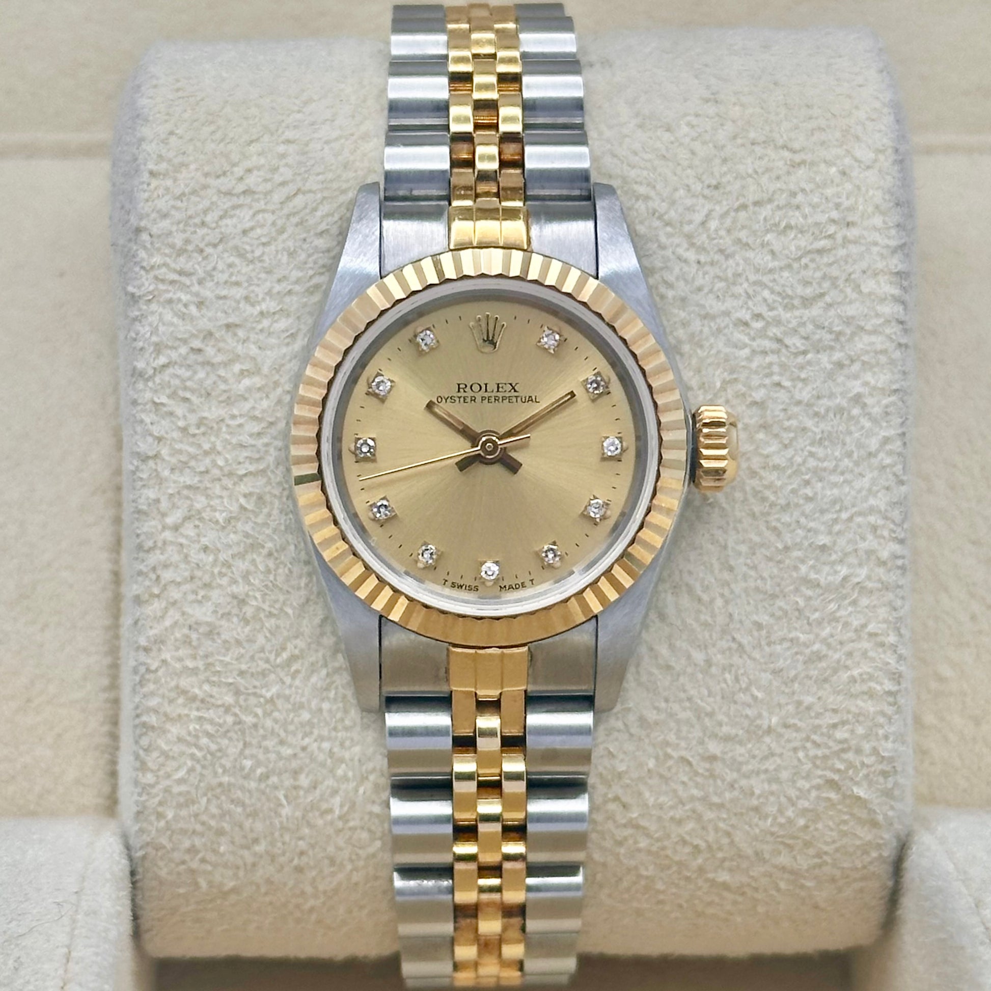 Oyster Perpetual 26 Champagne Diamond Dial 18K Yellow Gold Ref 67193 1991
