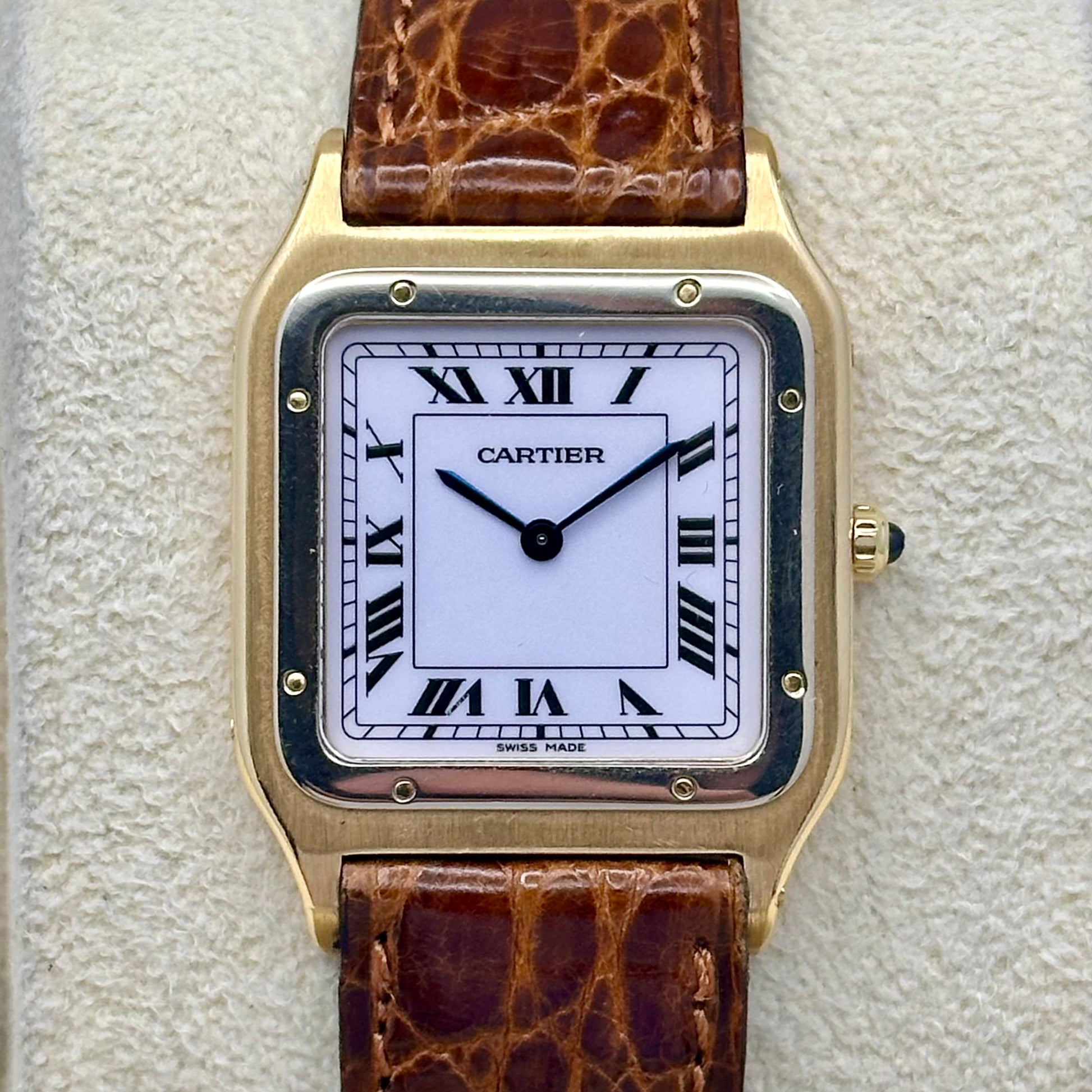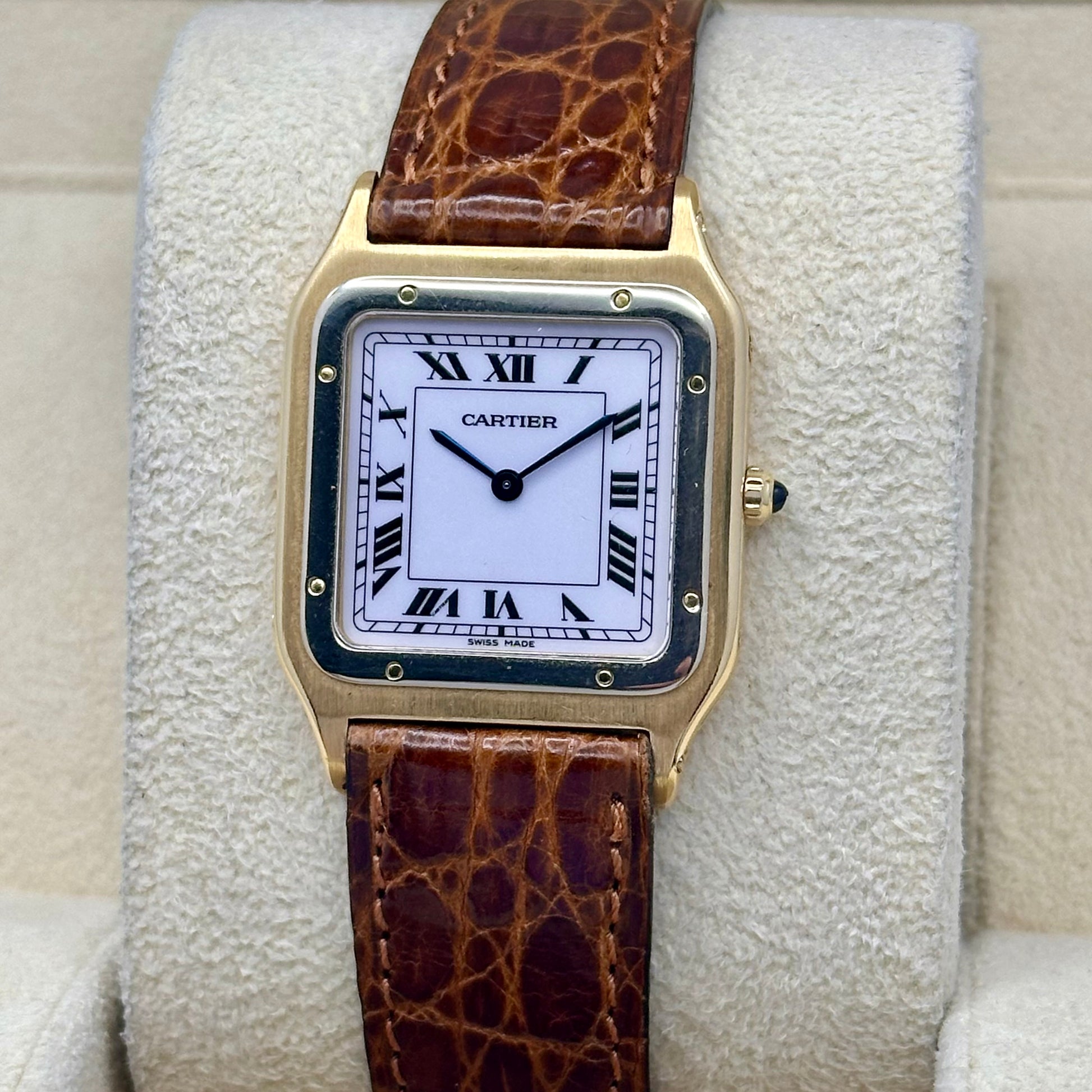 Santos Dumont 18K Yellow Gold Manual Winding White Romans Ref 96061 1990