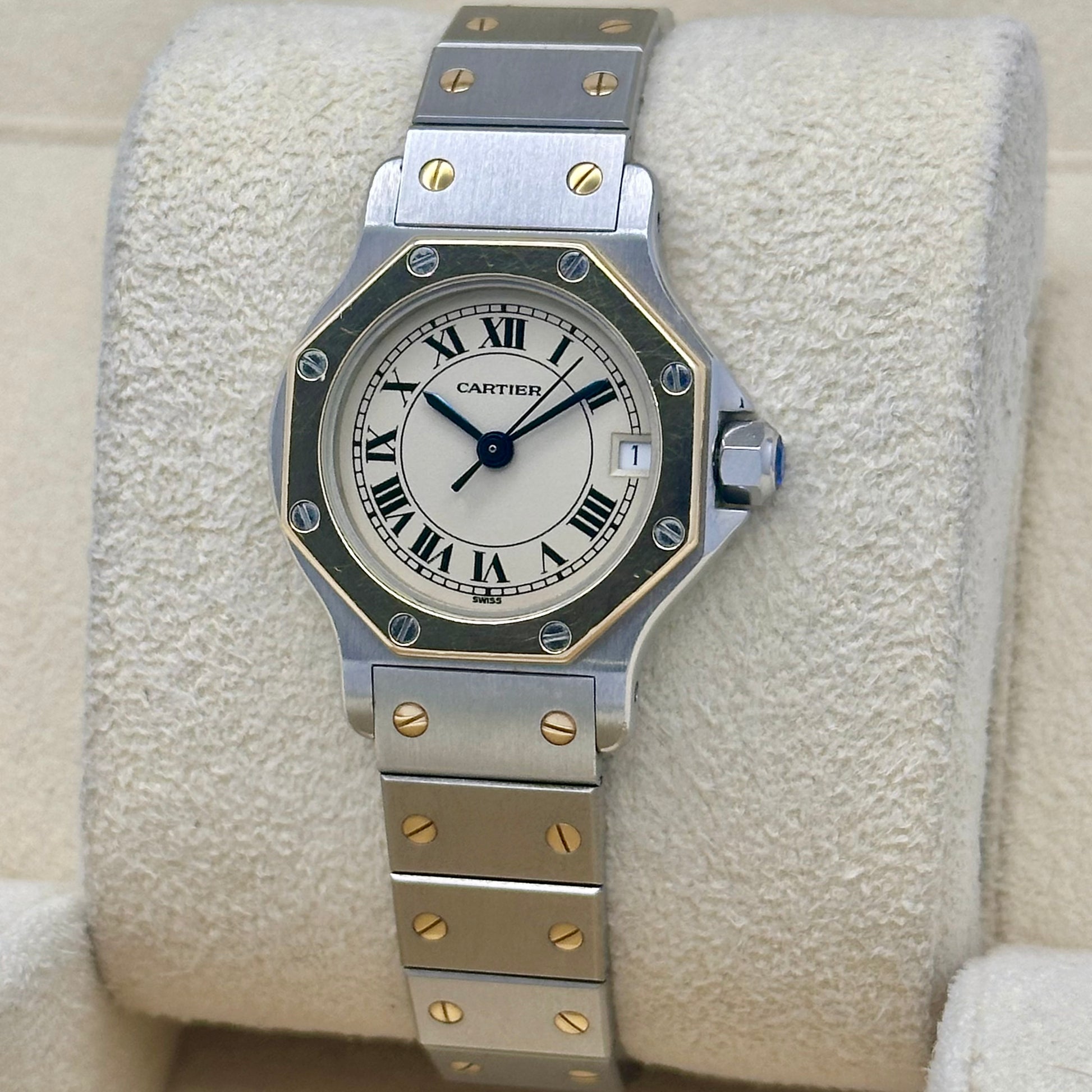 Santos Octagon Small White Romans 18K Yellow Gold Two Tone Ref 187903 1990