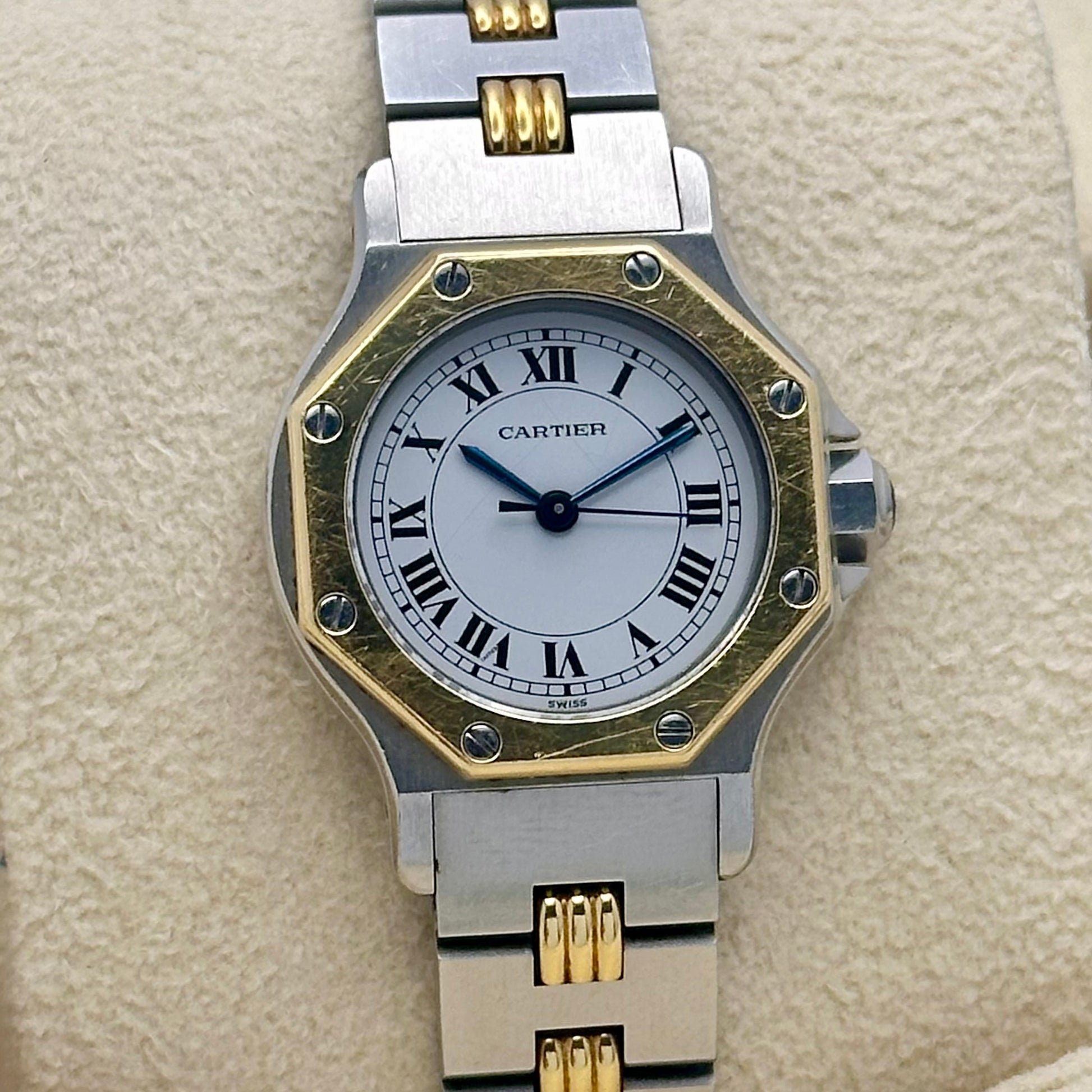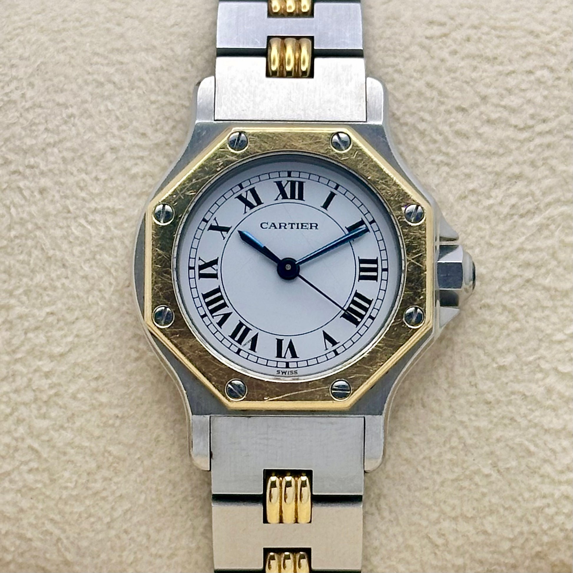 Santos Octagon White Romans 18K Yellow Gold 0907 1990