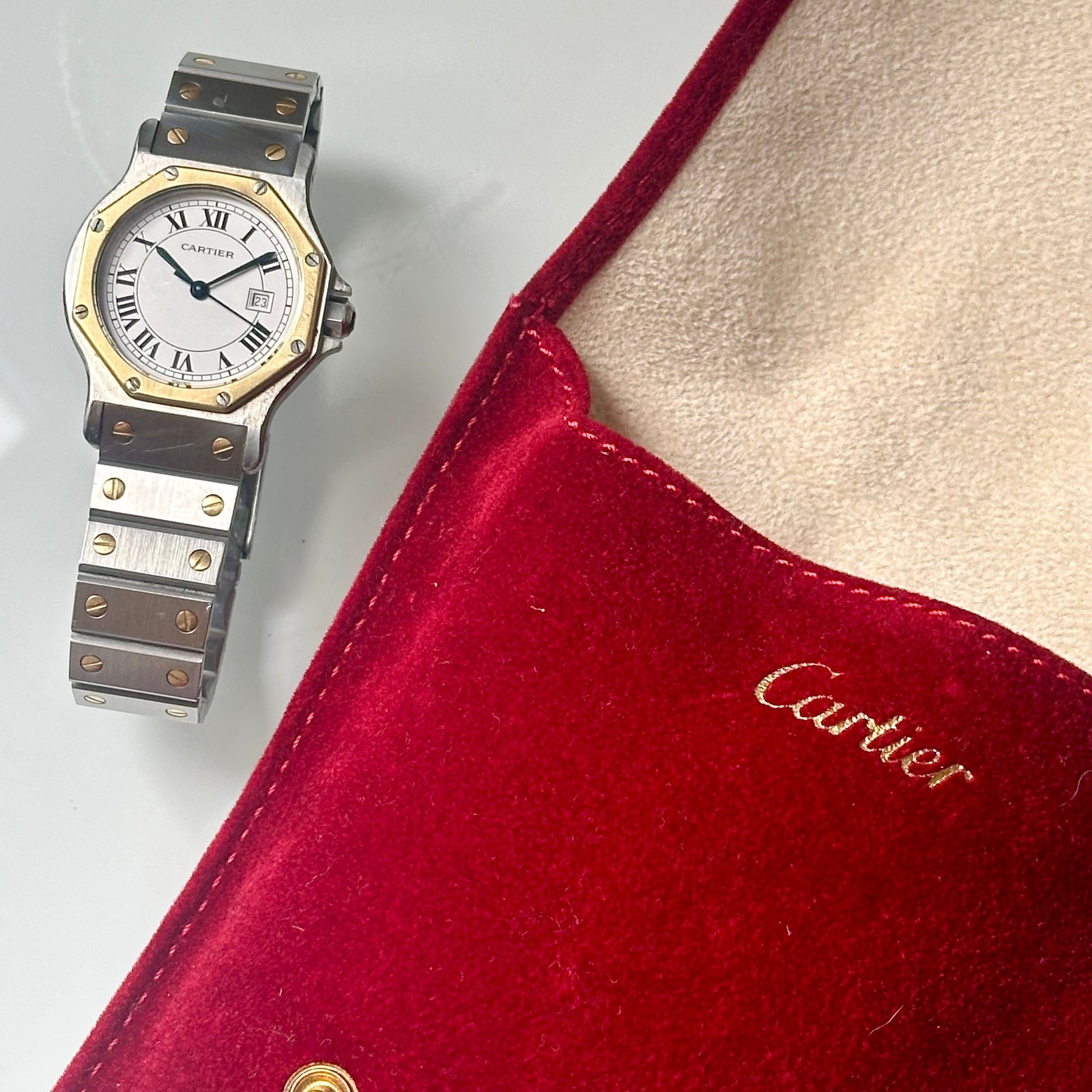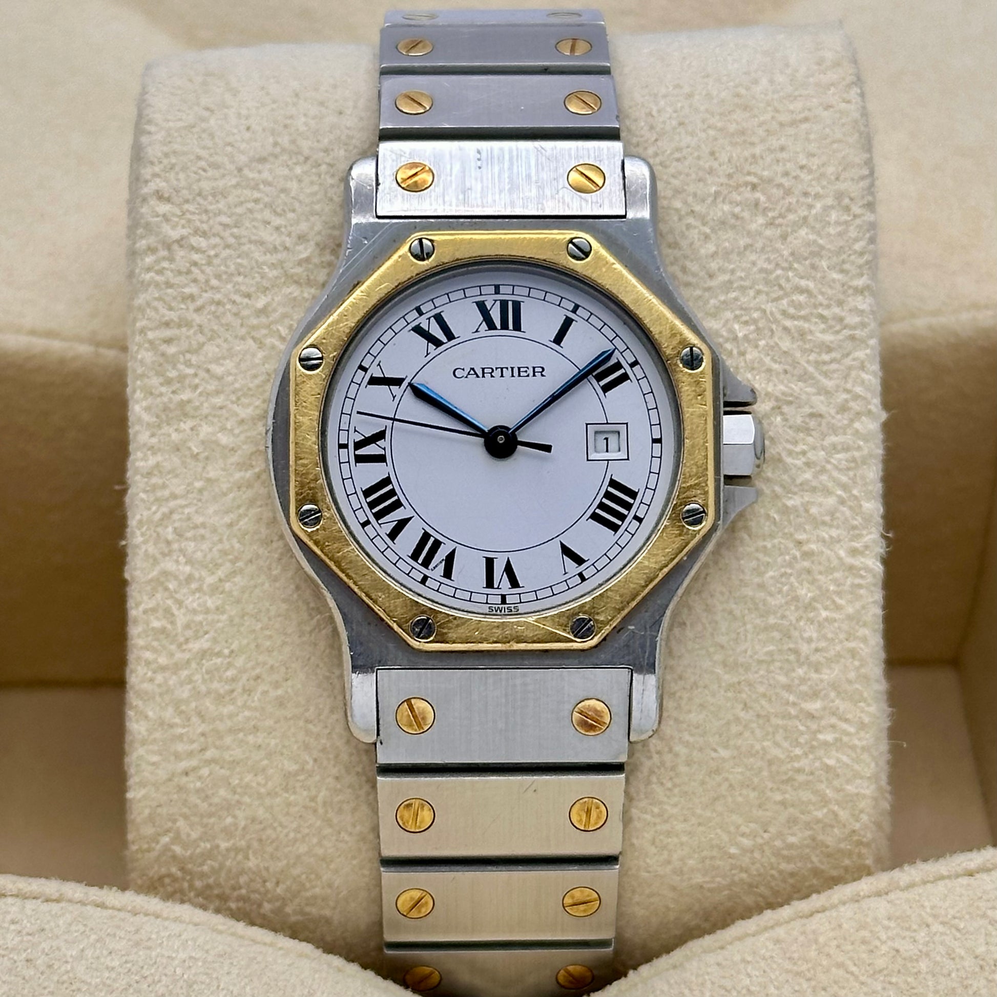 Santos Octagon White Romans 18K Yellow Gold Ref 2966 1990