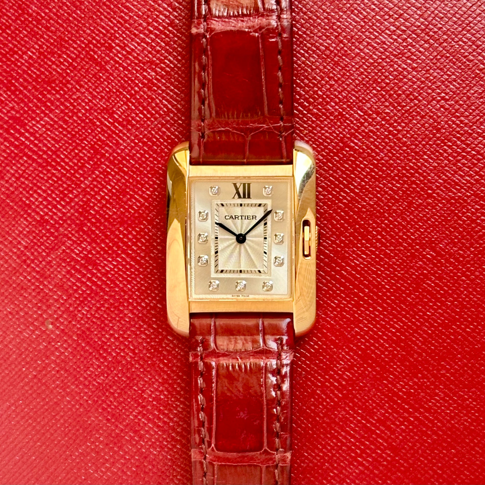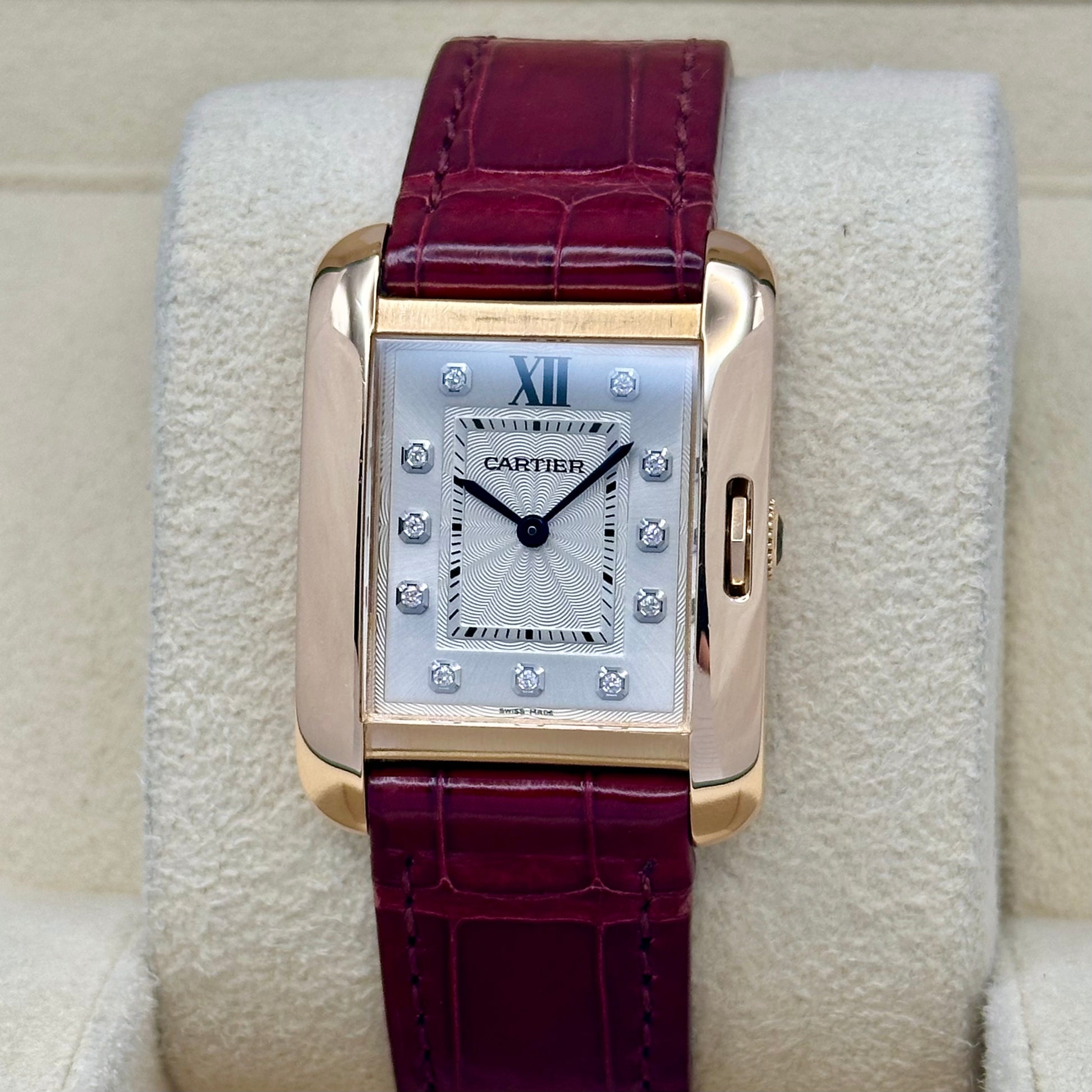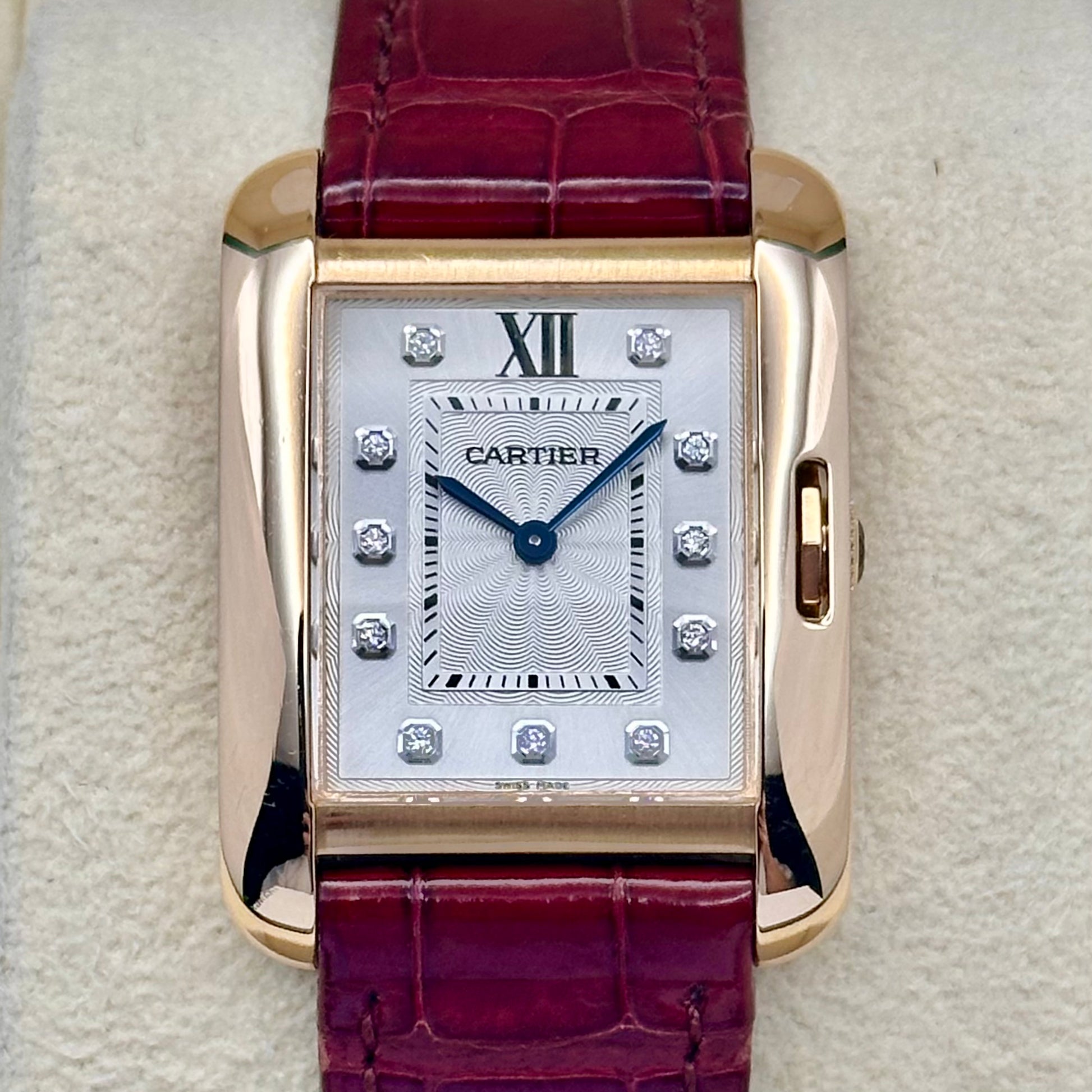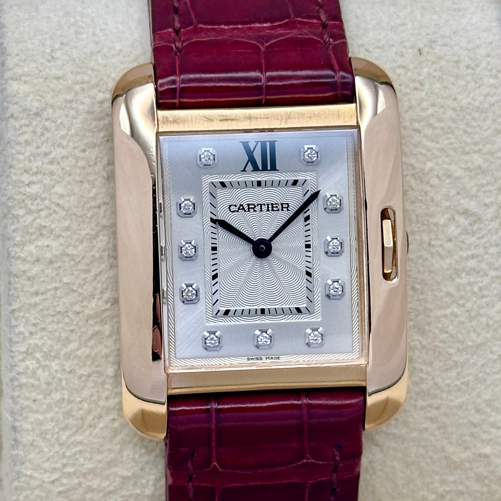 Tank Anglaise 18K Rose Gold Silver Guilloché Diamond Dial Ref WJTA0007
